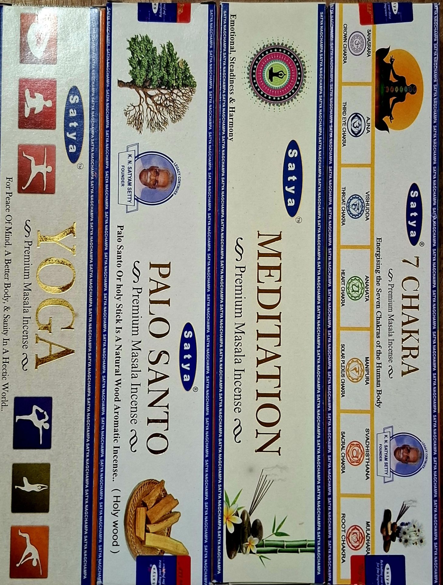 Tartalma: 4 darab füstölő: Yoga, Palo santo, Meditation, 7 chakra
